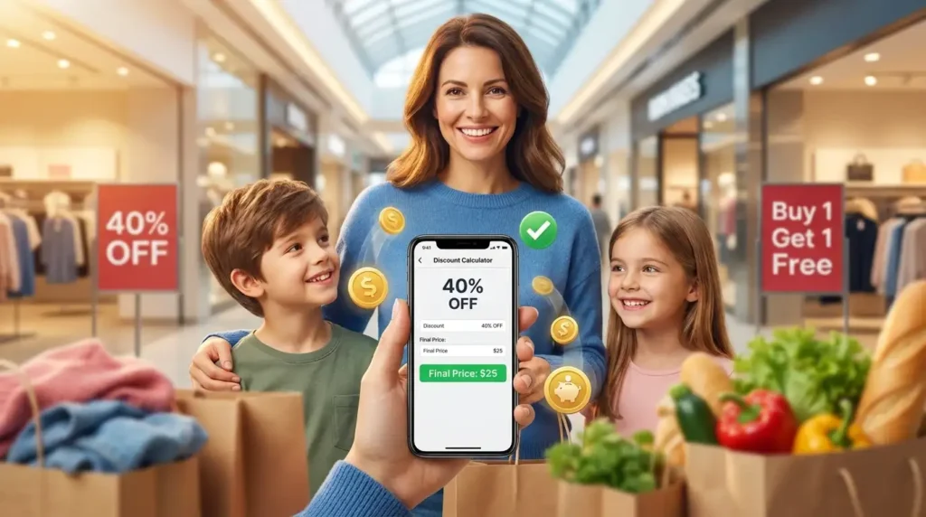 You see a 50% off sign at your favourite store. Your heart jumps. However, please consider—what will the actual cost be? And how much are you really saving? Most people grab their phones and struggle with the maths. Some guess. Others give up and just buy without knowing. Not anymore. Our free Discount Calculator Tool does the maths for you in seconds. Type in two numbers. Get your answer. Done. I’ve helped thousands of shoppers save money with this tool. It works for everyone—busy parents, college students, small business owners, anyone who buys things. Let me show you how it works.